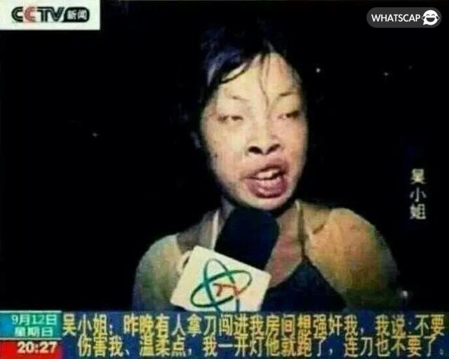吳小姐:昨晚有人拿刀闖進我房間想強姦我,我說:不要傷害我、溫柔點,我一開燈他就跑了,連刀也不要了